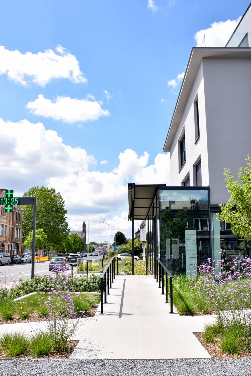 Vanaf de parking is er een hellend vlak naar de ingang dat gebruiksvriendelijk is voor rolstoelpatiënten.
